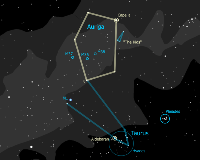 “God’s Battle” is known to us as the constellation “Auriga,” located just above the Wolf’s Jaw at the edge of the mouth. The Icelandic manuscript doesn’t identify which god is battling, but Heide believes it to be Tyr, cosmically in “battle” with Fenrir. Each spring, Sunna is protected from Fenrir by Tyr battling the wolf. He uses the Old English Rune Poem as further support for this claim. The poem for the tiw rune (represented by Tyr) starts with “ᛏ biþ tacna...” “Tacna” has many meanings. It is related to our modern English “token” but can also represent a sign, a distinguishing mark, a signal, a symbol or emblem, an indication of a medical symptom, or - as it is used in Icelandic - a constellation. Thus providing support for the idea of Tyr represented by a constellation, and that constellation being “God’s Battle.”